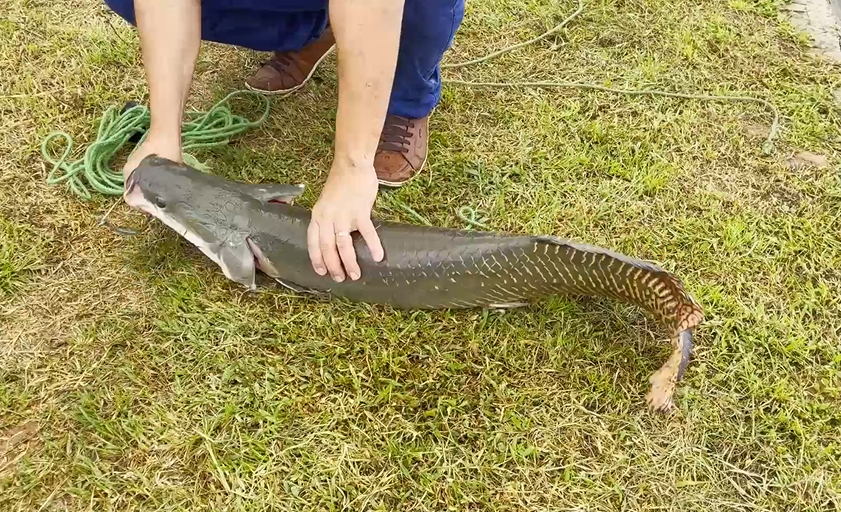 "A alimentação dele é um pouco cara, que a alimentação é ração própria, ração carnívora. Essa ração é mais cara um pouco do que essa outra ração comum do peixe. Mas ele tem um ganho de peso muito bom. Ele é um peixe que chega a ganhar, no primeiro ano, chega a ganhar 12 quilos", explicou o empresário.
