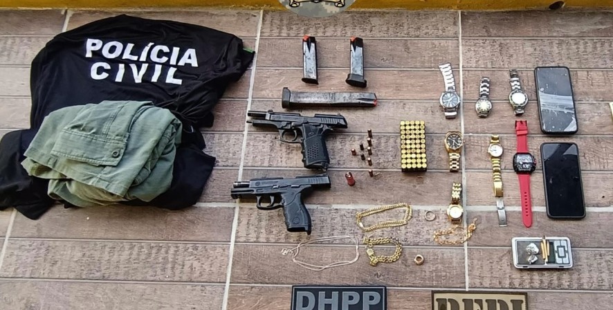 Na operação, também foram apreendidas três pistolas, carregadores municiados e camisas semelhantes às utilizadas pelas polícias Civil e Militar. Conforme a investigação, os suspeitos utilizavam esses materiais para se passar por agentes de segurança enquanto praticavam crimes.