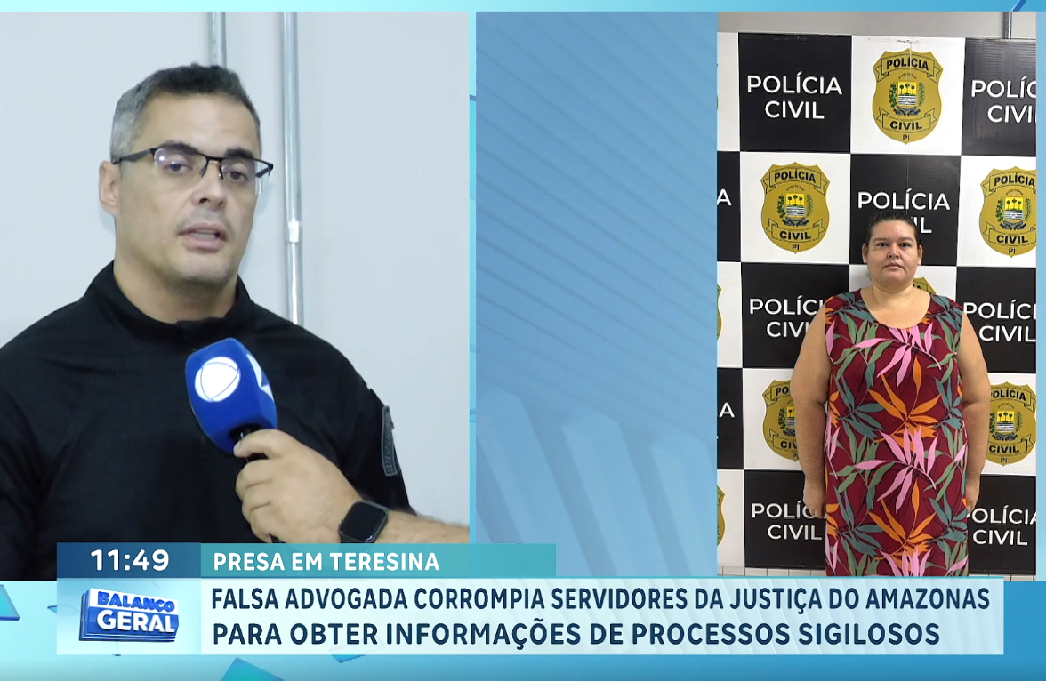 O delegado Tales Gomes deu mais detalhes à TV Antena 10 sobre a prisão de Lucila Meireles Costa, de 42 anos, investigada por se passar por advogada e corromper servidores da Justiça do Amazonas. Ela foi presa nesta sexta-feira (20), em Teresina. Segundo o delegado, a mulher deixou o Amazonas há cerca de um ano após passar a receber ameaças e decidiu se esconder na capital piauiense. Natural de Manaus, Lucila teria se mudado para Teresina alegando problemas com pessoas na região onde morava.