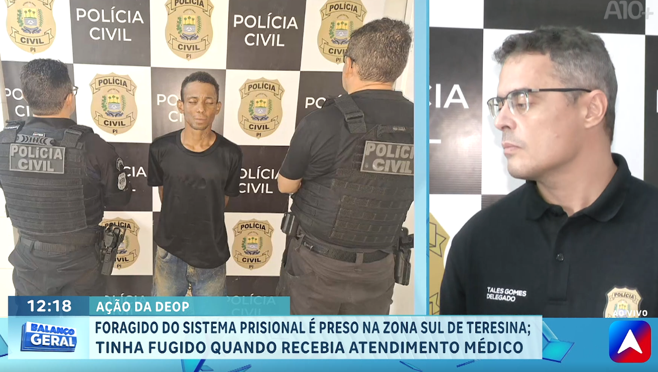 "Ele é natural de Colinas, no Maranhão, e cumpria pena no presídio de Altos; uma pena de 14 anos pelo crime de arrombamento em 2021. Ele precisou ser atendido no Hospital Natan Portela e, em determinado momento, fugiu do hospital. Não bastasse o fato de fugir, há indicativos de que ele vinha criando problemas para a segurança na região central de Teresina", disse o delegado Tales Gomes.