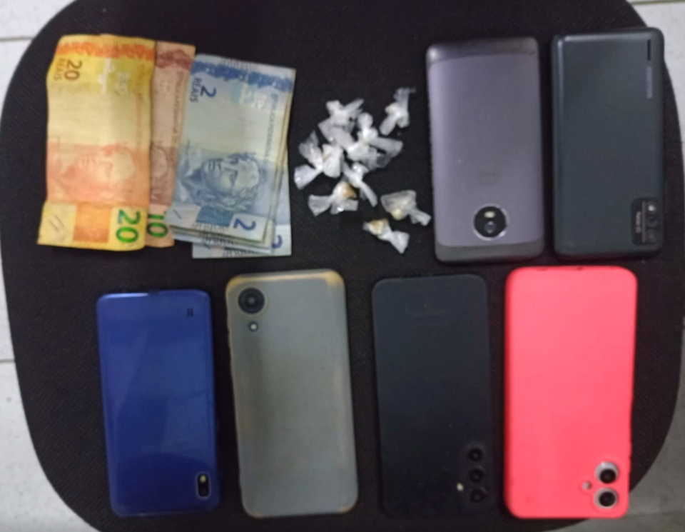 As diligências continuaram e, pouco tempo depois, ele foi localizado em outra residência. Durante a ação, os policiais apreenderam seis aparelhos celulares, além de drogas e dinheiro em espécie.