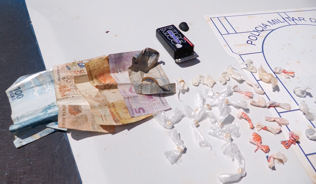 Durante a abordagem no local, os policiais identificaram suspeitos com antecedentes criminais e flagraram uma tentativa de descarte de drogas no momento da chegada da equipe. Segundo o major, um dos detidos já possui diversas passagens pela polícia.