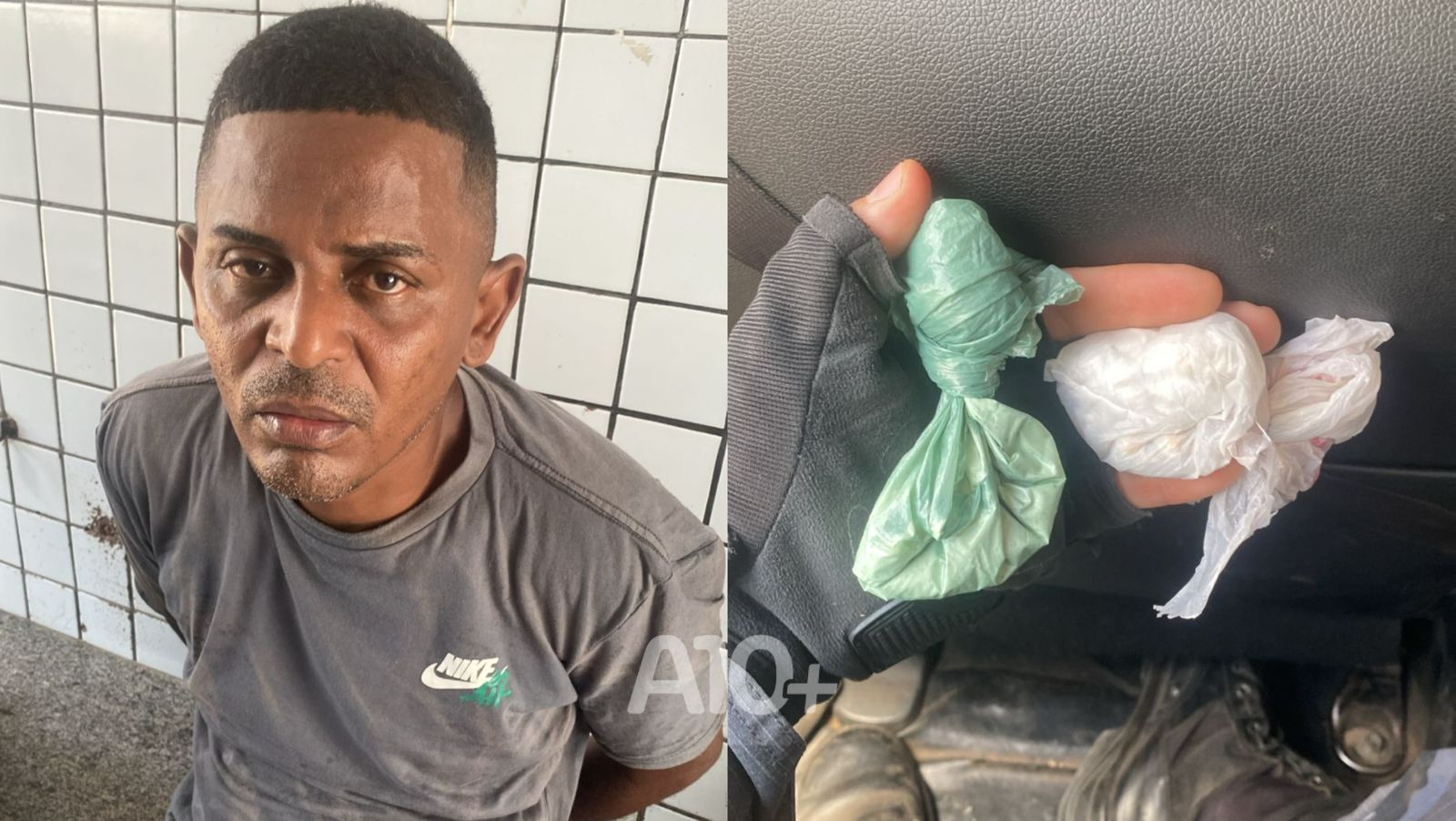 O militar detalhou ainda que o suspeito já foi condenado por tráfico interestadual de drogas, após ser preso no estado de Goiás com grande quantidade de entorpecentes. Na ocasião, ele foi condenado a 18 anos de prisão, dos quais cumpriu cerca de dez. “Ele já foi preso por tráfico de drogas interestadual, com uma grande quantidade de drogas no estado de Goiás. Foi sentenciado a 18 anos, cumpriu dez e estava em liberdade. Agora ele foi pego com essa porção de drogas”, afirmou Alef.