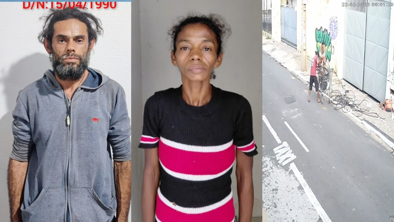 Um homem, identificado como Keuly Araújo, conhecido como "Vigia do Crime", e sua companheira. Maria Jaqueline, foram presos na segunda-feira (23) suspeito de furtar a fiação de uma agência bancária no Centro de Teresina. Imagens de câmera de segurança registraram o momento do crime, que ocorreu no domingo (22).