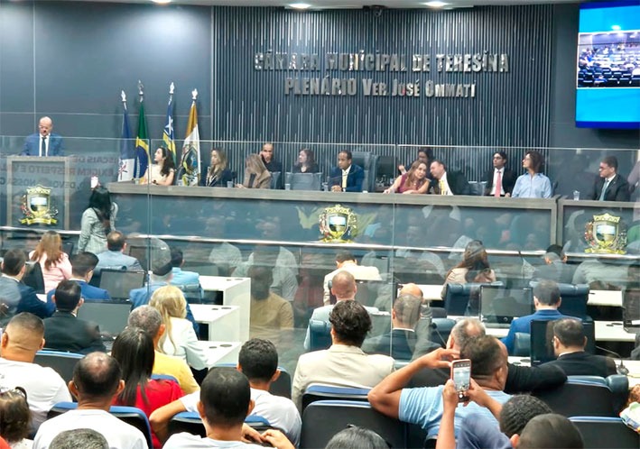 A Câmara Municipal de Teresina abriu oficialmente, nesta terça-feira (3), os trabalhos legislativos de 2026 com a sessão solene que marcou o início do segundo ano da 20ª Legislatura. A leitura da mensagem anual do prefeito Sílvio Mendes (UB) deu o tom do que a gestão pretende fazer neste ano, mas o evento começou em clima de tensão, com protestos de servidores municipais no plenário e interrupções durante o discurso do prefeito.