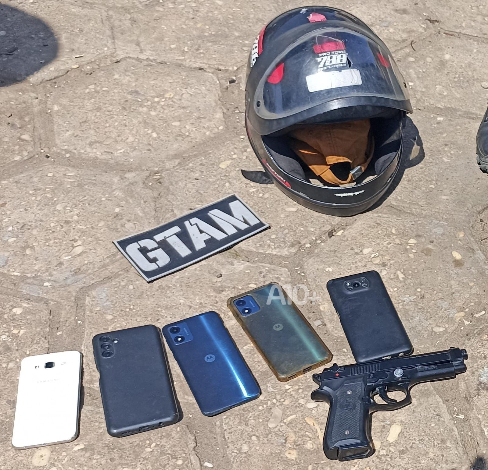 À TV Antena 10, o GCM F. Silva relatou que a equipe foi abordada por um popular que relatou a presença de dois indivíduos em uma motocicleta, praticando assaltos nas imediações. Com eles, foram apreendidos celulares, um simulacro de arma de fogo e a motocicleta.
