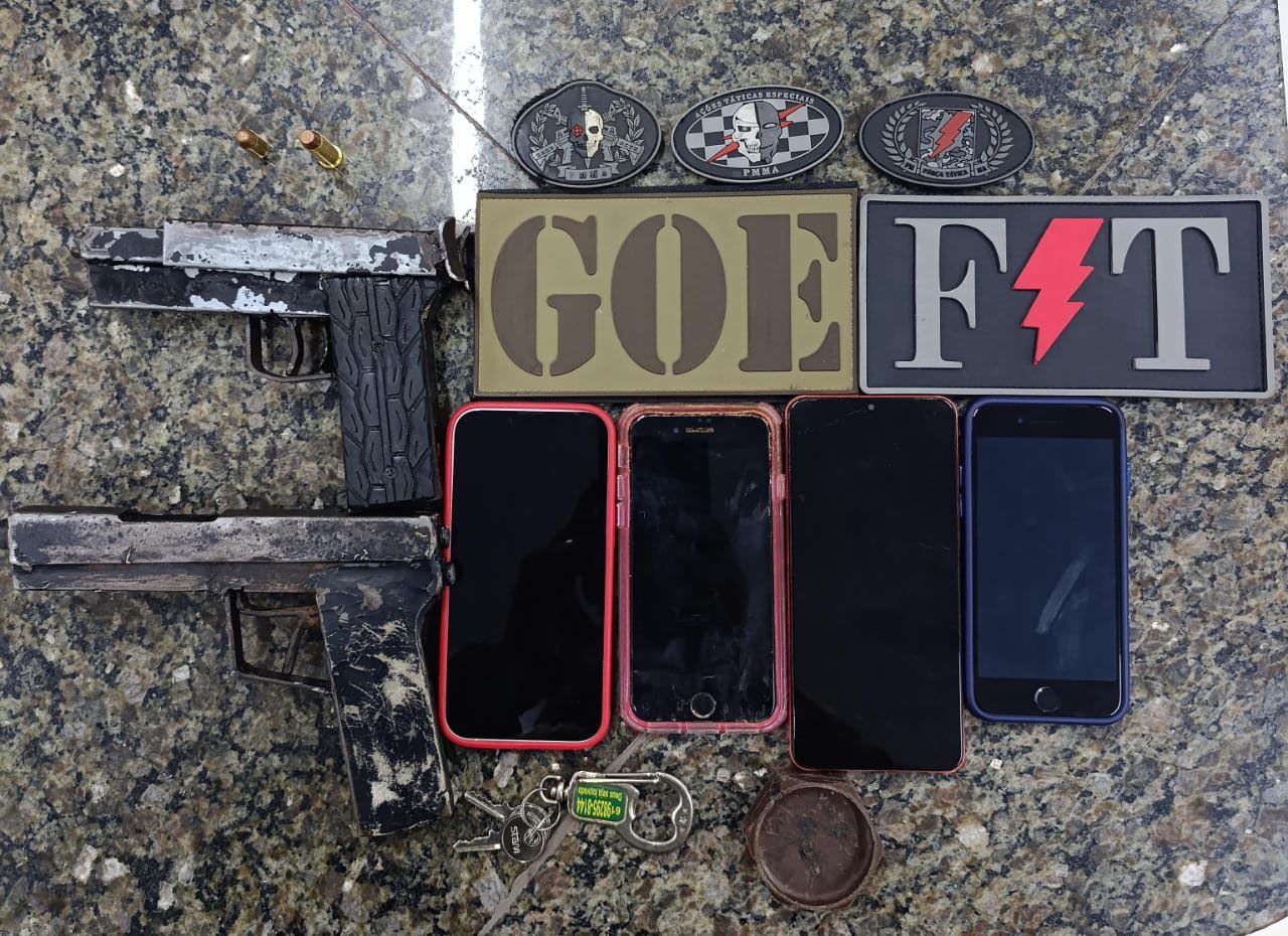 De acordo com informações da polícia, o grupo estava em atitude suspeita e tentou fugir ao perceber a aproximação das viaturas. Durante a abordagem, os policiais encontraram duas armas de fogo de fabricação caseira, além de aparelhos celulares.