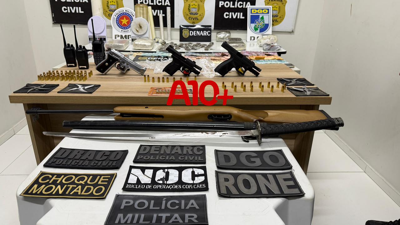A primeira megaoperação de 2026, deflagrada pelo DENARC e DRACO, resultou na prisão de pelo menos 10 pessoas, apreensão de drogas, de armas, um "manual exemplar" e até uma espada, em Teresina. Os delegados responsáveis pela ação policial detalharam a ação e explicaram sobre as regras estabelecidas no manual do Bonde dos 40, durante entrevista à TV Antena 10 e ao A10+ na manhã desta sexta-feira (09).