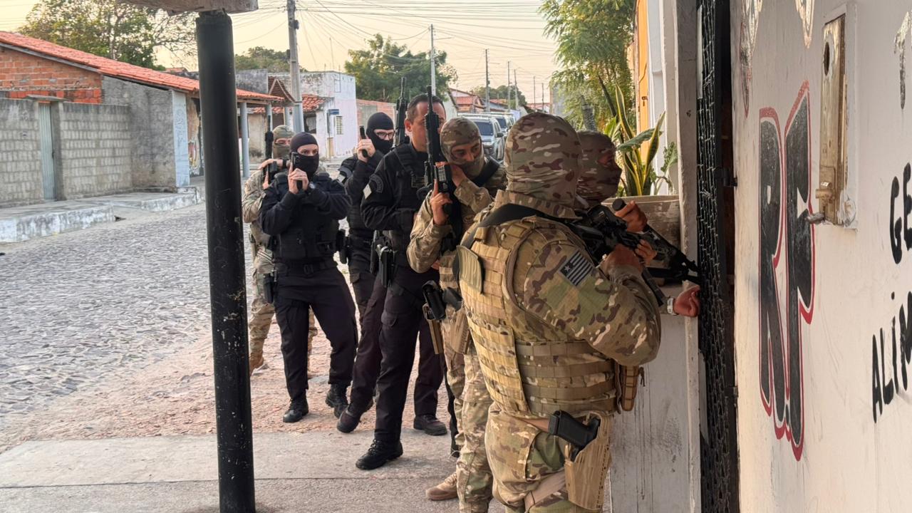 A ação integra as ações estratégicas do Pacto Pela Ordem e resultou no cumprimento de 26 ordens judiciais, entre mandados de prisão preventiva, buscas e apreensões, internação provisória de adolescente e sequestro de um imóvel utilizado pelo grupo criminoso liderado por “Chapolin”, figura de alta reincidência no tráfico da região. As equipes atuaram de forma integrada para neutralizar a célula criminosa que utilizava um estabelecimento comercial como fachada para a venda de entorpecentes.