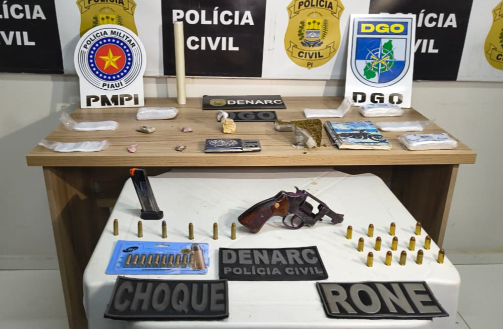 “Realizamos a prisão de um indivíduo no Parque Vitória, nas proximidades do bairro Mário Covas, zona sul de Teresina, e apreendemos diversas munições de diversos calibres, de uso restrito também, revólver, material de embalagem plástica utilizado costumeiramente no tráfico e drogas. As forças de segurança estão atentas. É uma ação na véspera do último dia do ano, mas de forma firme e imbricada, essas forças policiais atuam aqui para combater o tráfico de drogas”, disse o delegado Breno Holanda.