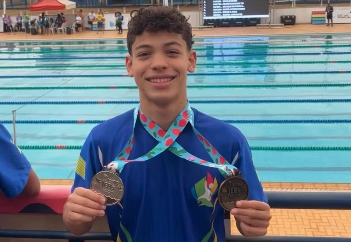 O nadador Arthur Nunes foi destaque na delegação piauiense de natação dos Jogos Escolares Brasileiros (JEBs) 2025. Representando o Piauí e o clube AABB, o atleta de apenas 14 anos conquistou duas medalhas na competição, que está sendo realizada em Uberlândia (MG), entre os dias 5 e 28 de outubro.