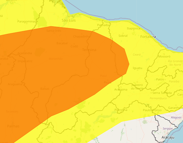 O Instituto Nacional de Meteorologia divulgou dois novos alertas com previsão de chuvas intensas nos 224 municípios do Piauí, nesta segunda-feira (22). Os avisos valem até às 10h da terça-feira (23).