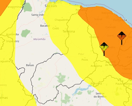 O Instituto Nacional de Meteorologia (Inmet) emitiu nesta terça-feira (07) dois alertas de chuvas para grande parte do Piauí, sendo um amarelo de perigo potencial de chuvas intensas para o centro e o norte do estado e outro laranja de perigo de chuvas intensas para o litoral do Piauí. O comunicado foi publicado na manhã de hoje e segue até a quarta-feira (08). De acordo com o mapa do Inmet, Teresina está dentro da área do alerta amarelo.