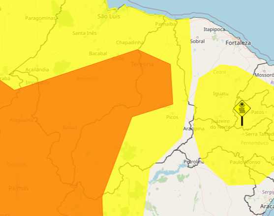 O Instituto Nacional de Meteorologia (Inmet) emitiu nesta sexta-feira (23) dois alertas de chuvas para todo o Piauí, sendo um amarelo de perigo potencial de chuvas intensas e outro laranja de perigo de chuvas intensas. O comunicado foi publicado na manhã de hoje e segue até o sábado (24). De acordo com o mapa do Inmet, Teresina está dentro da área do alerta laranja.