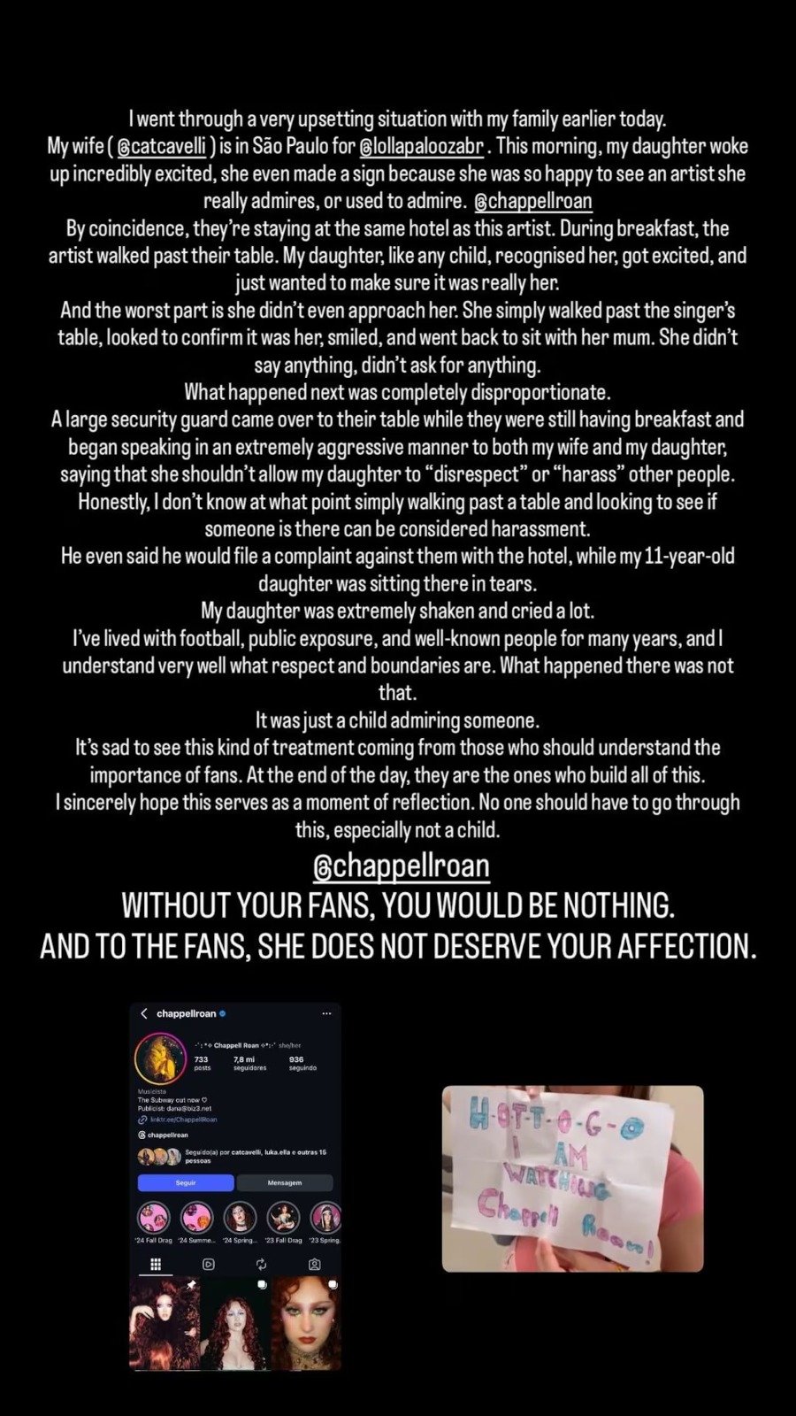 O nome de Chappell Roan dominou as redes sociais brasileiras neste fim de semana, mas não apenas pelo seu show como headliner do Lollapalooza Brasil 2026. A cantora norte-americana está envolvida em uma polêmica após Jorginho, volante do Flamengo e da seleção italiana, acusar a equipe da artista de tratar sua enteada de 11 anos com agressividade.