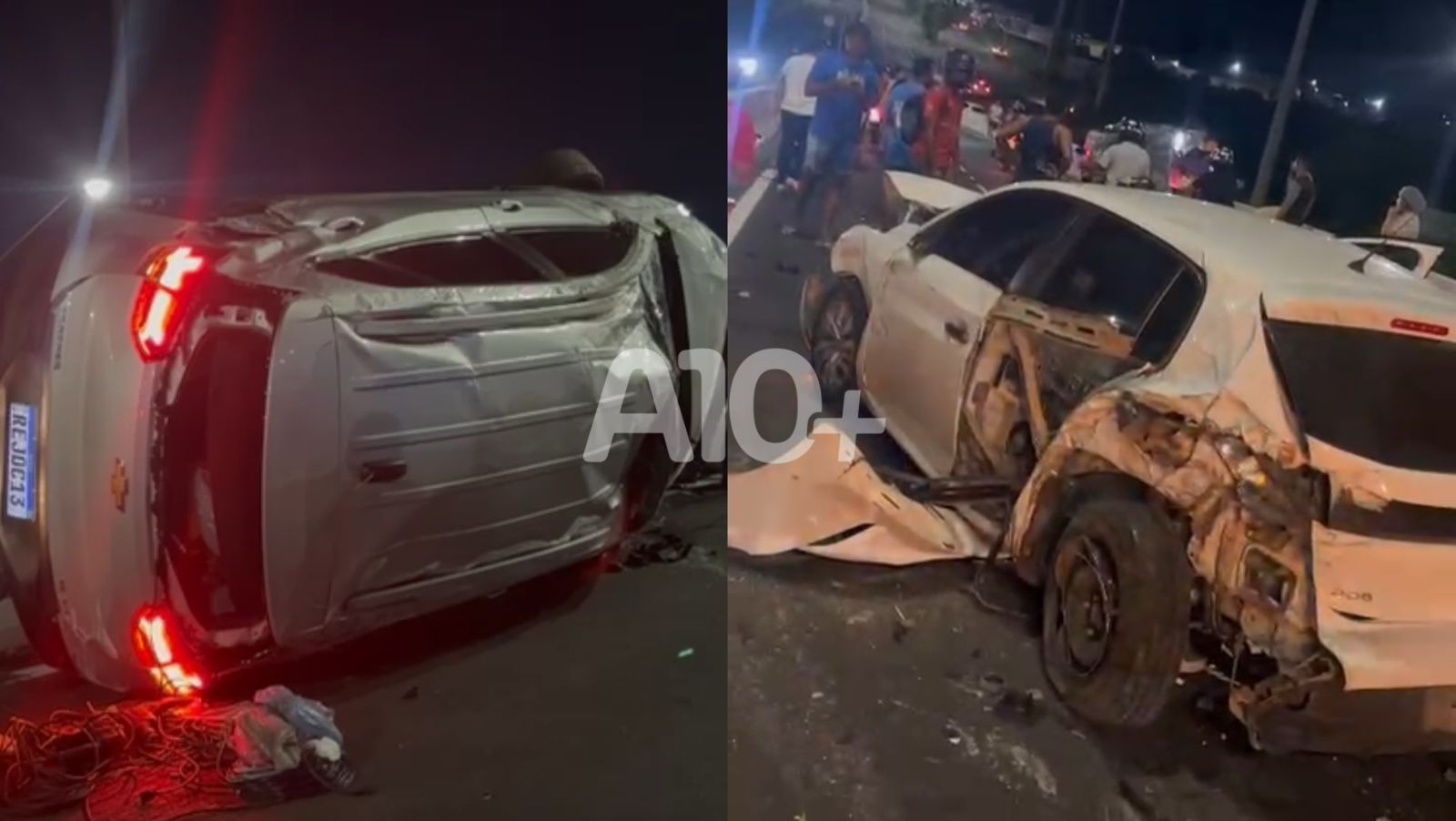 Um acidente entre dois carros deixou um veículo tombado, outro parcialmente destruído e uma pessoa ferida na noite desta quarta-feira (25), no viaduto da Avenida Miguel Rosa, na entrada da BR-316, em Teresina.