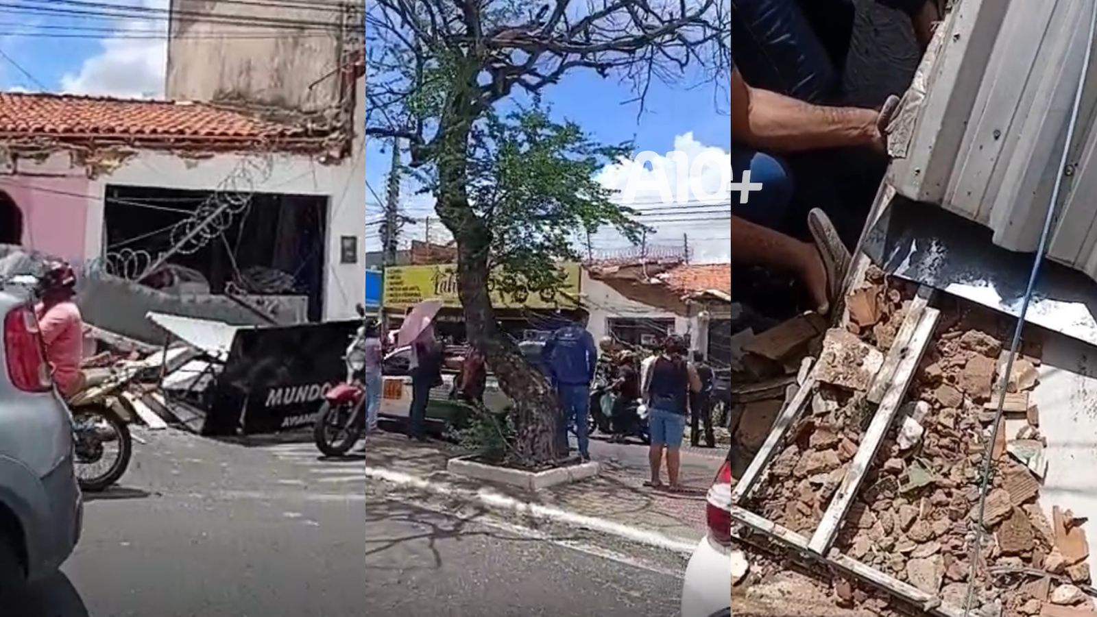 Imagens que circulam nas redes sociais mostram que parte dos escombros ficou sobre a vítima. Apesar do susto, o homem foi socorrido com vida e teria sofrido apenas ferimentos leves.