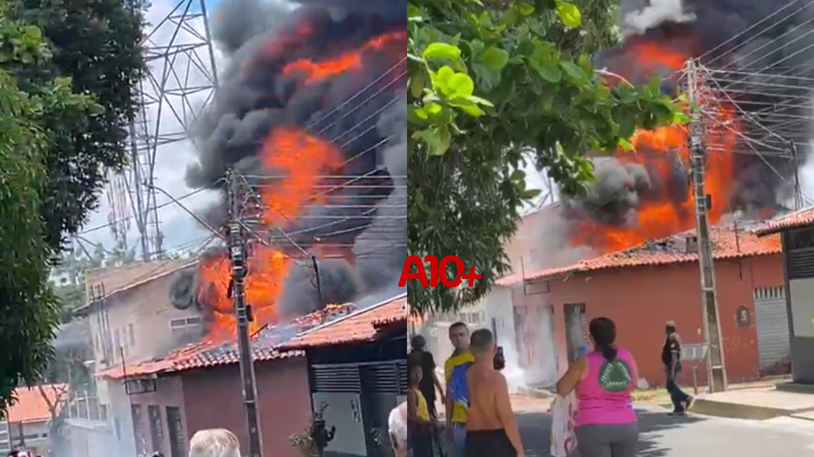 Um incêndio de grandes proporções atingiu um imóvel localizado no bairro Saci, na zona Sul de Teresina, nesta sexta-feira (06).