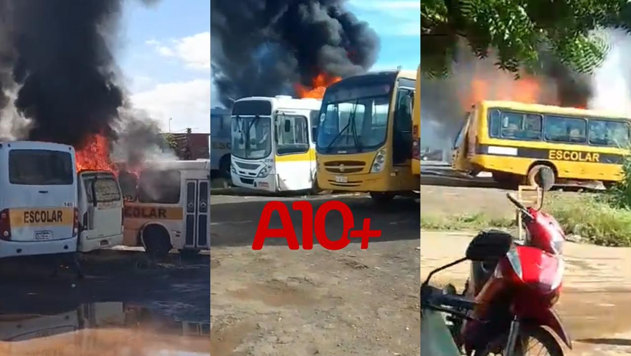 Um incêndio de grandes proporções em uma garagem atingiu três ônibus escolares e uma van, na manhã deste sábado (04), na cidade de Picos, Sul do Piauí. Um dos veículos ficou completamente destruído.
