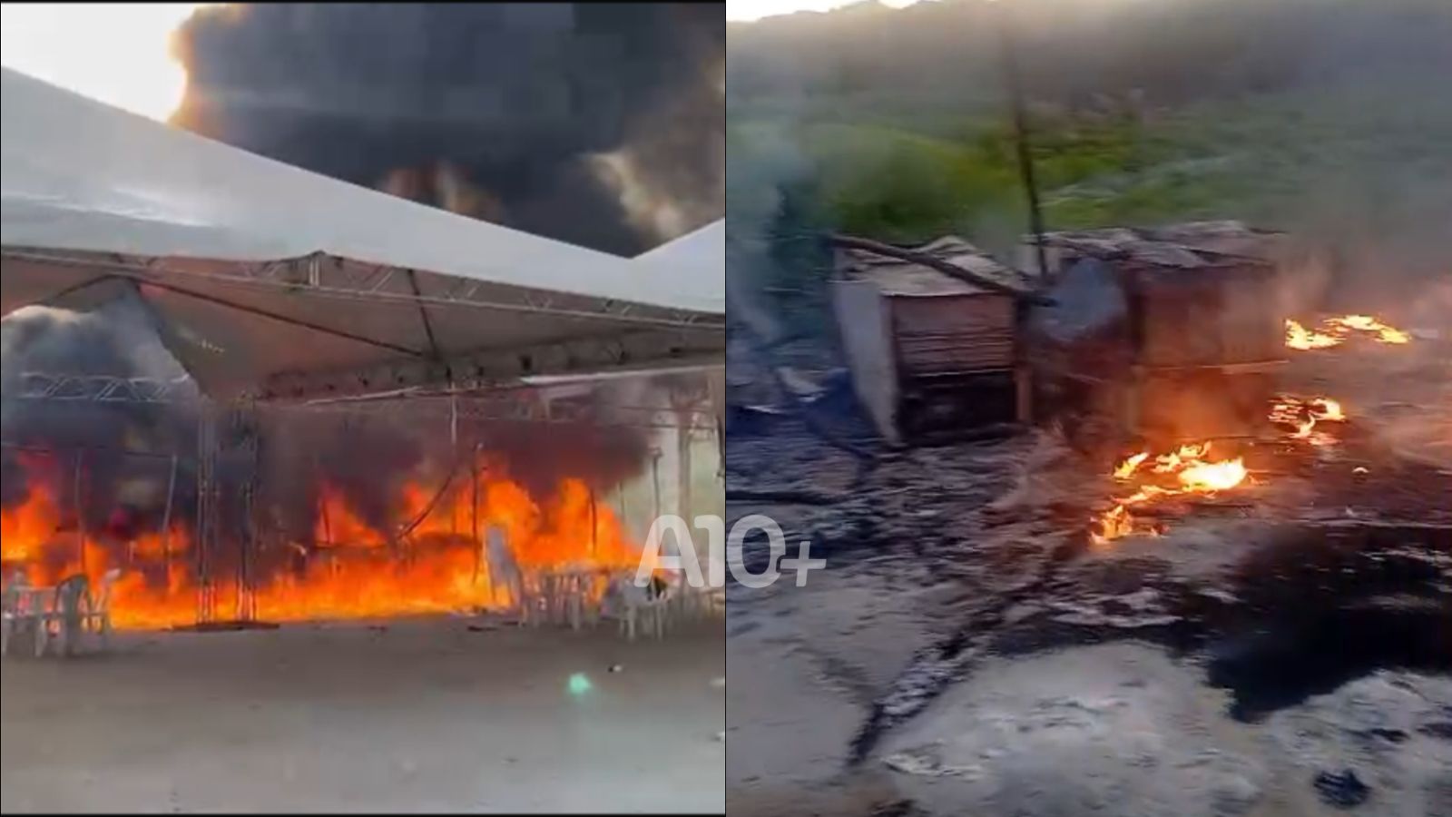 Um incêndio de grandes proporções destruiu completamente as barracas montadas para os festejos de Lagoinha do Piauí, na quinta-feira (15). As estruturas, localizadas ao lado da praça de eventos, no centro da cidade, eram feitas de palha e foram rapidamente consumidas pelas chamas, causando prejuízos aos barraqueiros.