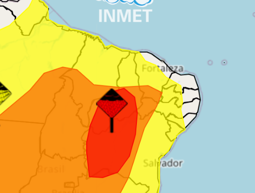 O Instituto Nacional de Meteorologia (Inmet) divulgou, nesta sexta-feira (20), um alerta vermelho que representa grande perigo para 108 municípios piauienses localizados nas regiões Sul e Sudoeste do Piauí. Todas as demais cidades estão sob alerta de chuvas intensas.