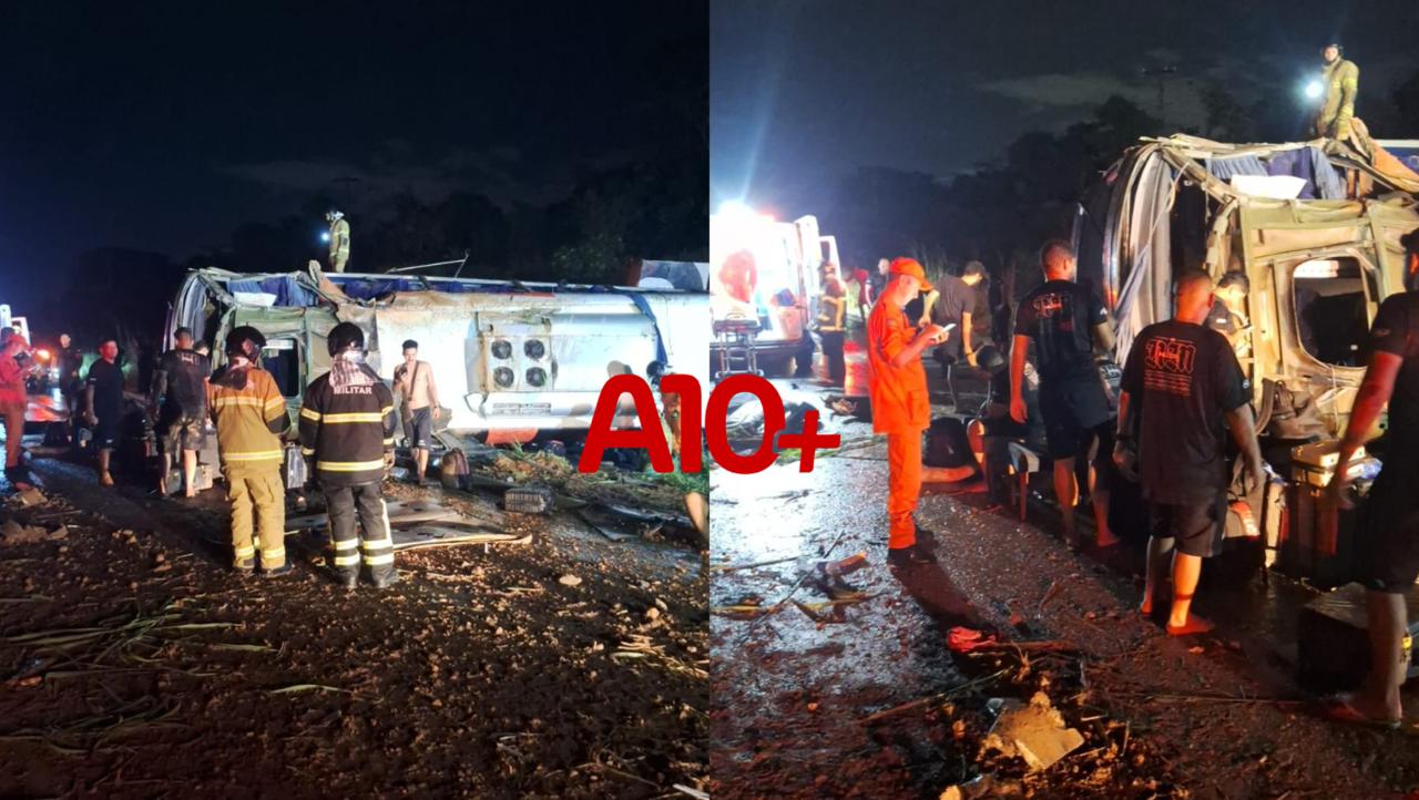 Um ônibus que transportava 22 integrantes da banda do cantor Núzio Medeiros tombou na madrugada deste sábado (04), próximo ao posto da Polícia Rodoviária Federal na BR-316, zona Sul de Teresina. Diversas pessoas ficaram feridas.