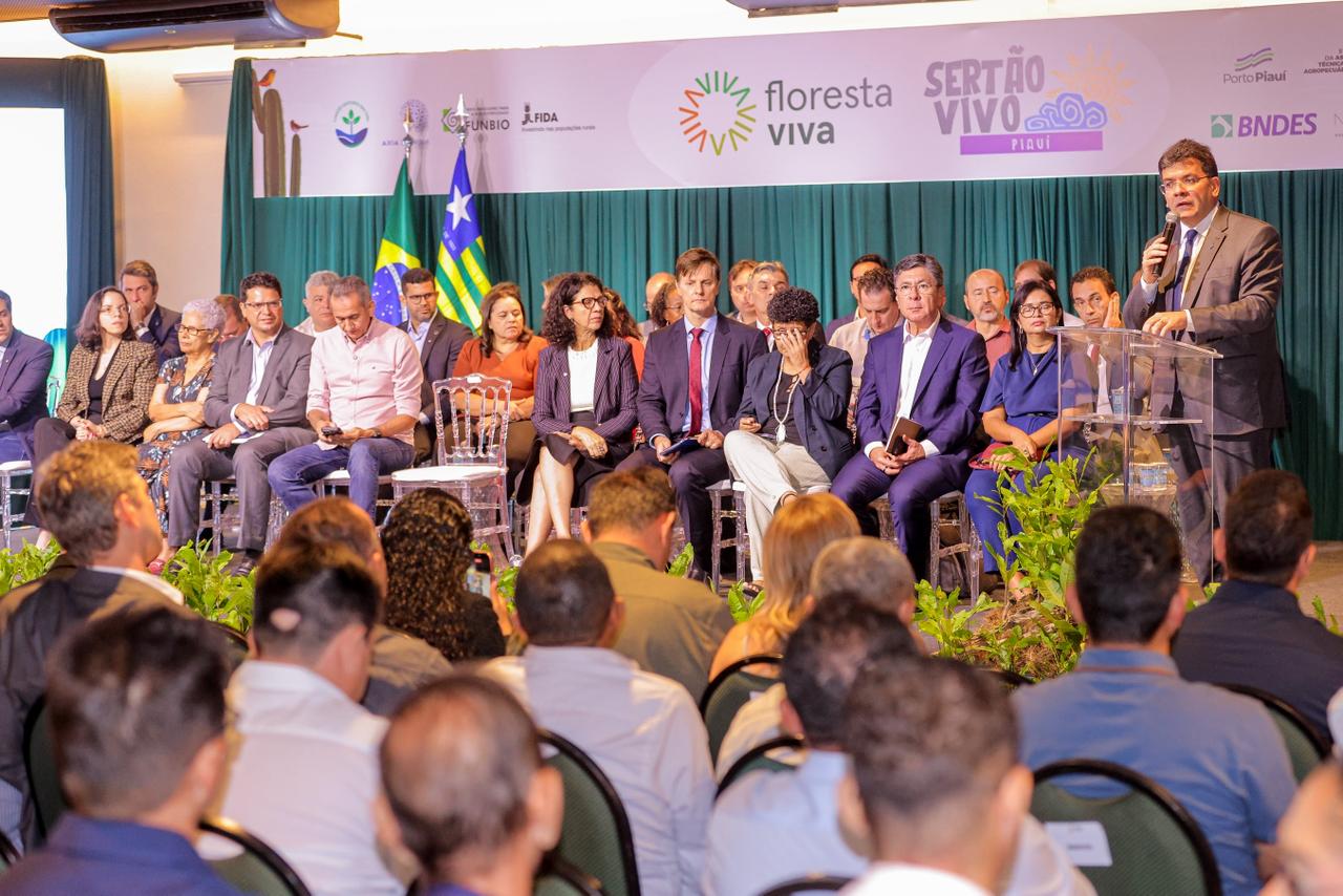 O governador do Piauí, Rafael Fonteles, e representantes do governo federal lançaram, nesta quarta-feira (15), o edital Floresta Viva – Bacia do Rio Parnaíba, iniciativa que vai destinar R$ 78 milhões para ações de restauração ecológica e revitalização dos recursos hídricos no estado. Participaram da solenidade o ministro da Integração e do Desenvolvimento Regional, Waldez Góes, e a diretora de Crédito Digital Para Micro, Pequenas e Médias Empresas do BNDES, Maria Fernanda Coelho. Além deles, o secretário nacional de Meio Ambiente Urbano, Recursos Hídricos e Qualidade Ambiental do Ministério do Meio Ambiente, Adalberto Maluf.