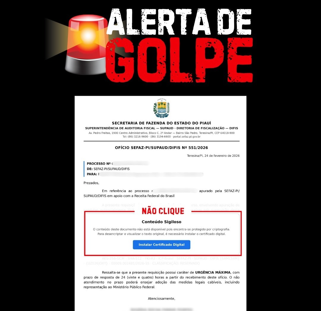 A Secretaria da Fazenda do Piauí (SEFAZ-PI) alertou a todos os contribuintes e a sociedade em geral que o órgão não emitiu nenhum ofício ou comunicado com o objetivo de realizar auditoria ou qualquer tipo de apuração fiscal com conteúdo sigiloso.