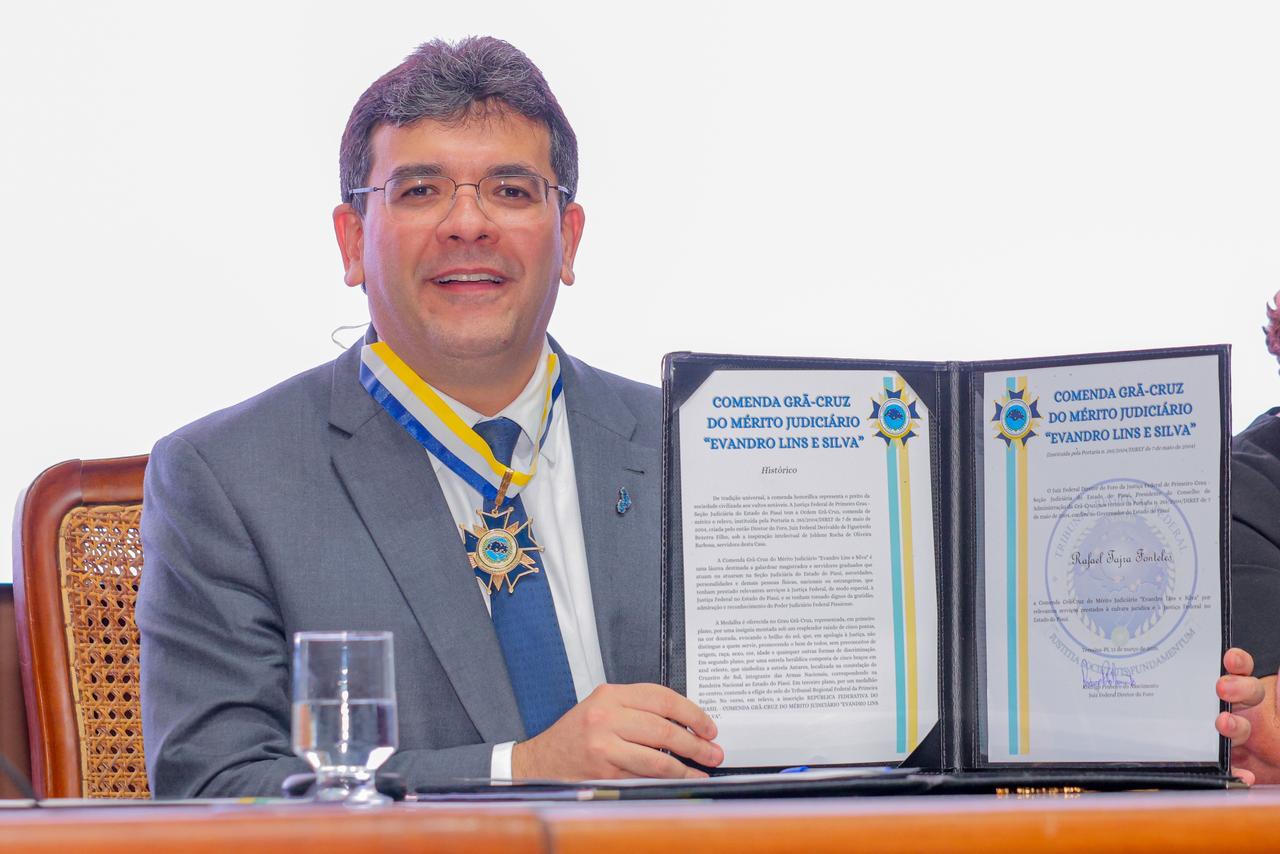 A Comenda Grã-Cruz do Mérito Judiciário “Evandro Lins e Silva” é concedida a autoridades e personalidades que se destacam pela contribuição ao fortalecimento da Justiça e das instituições democráticas. Na edição de 2026, o governador Rafael Fonteles foi um dos homenageados.