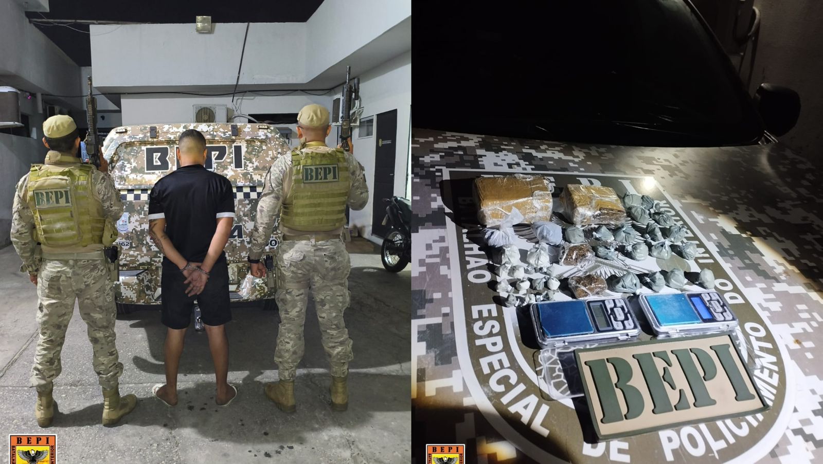 Segundo a Polícia Militar, o homem tentou fugir ao perceber a aproximação das equipes, acelerando uma motocicleta pela Rua Benjamin Martins. Ele foi interceptado poucos metros depois, carregando uma sacola com diversas porções de drogas.