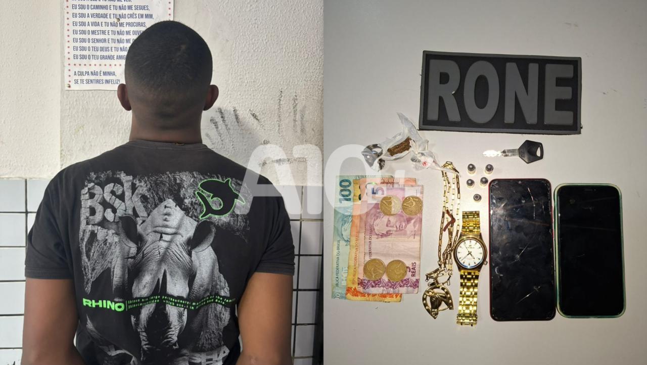 Ele foi apreendido junto ao material e foi conduzido à Central de Flagrantes, onde foi autuado por atos infracionais análogos a receptação, porte ilegal de munição e consumo pessoal de drogas.
