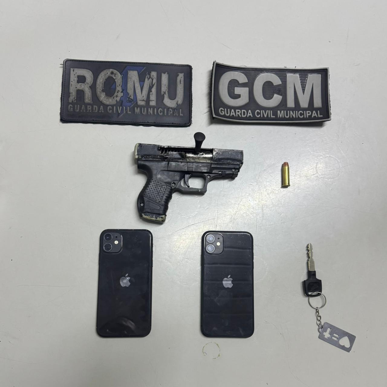 Com o apoio das equipes da ROMU (Rondas Ostensivas Municipais) e do BPTRAN da Polícia Militar, o objeto arremessado foi localizado, tratava-se de uma arma de fogo de fabricação artesanal, com uma munição calibre .38.