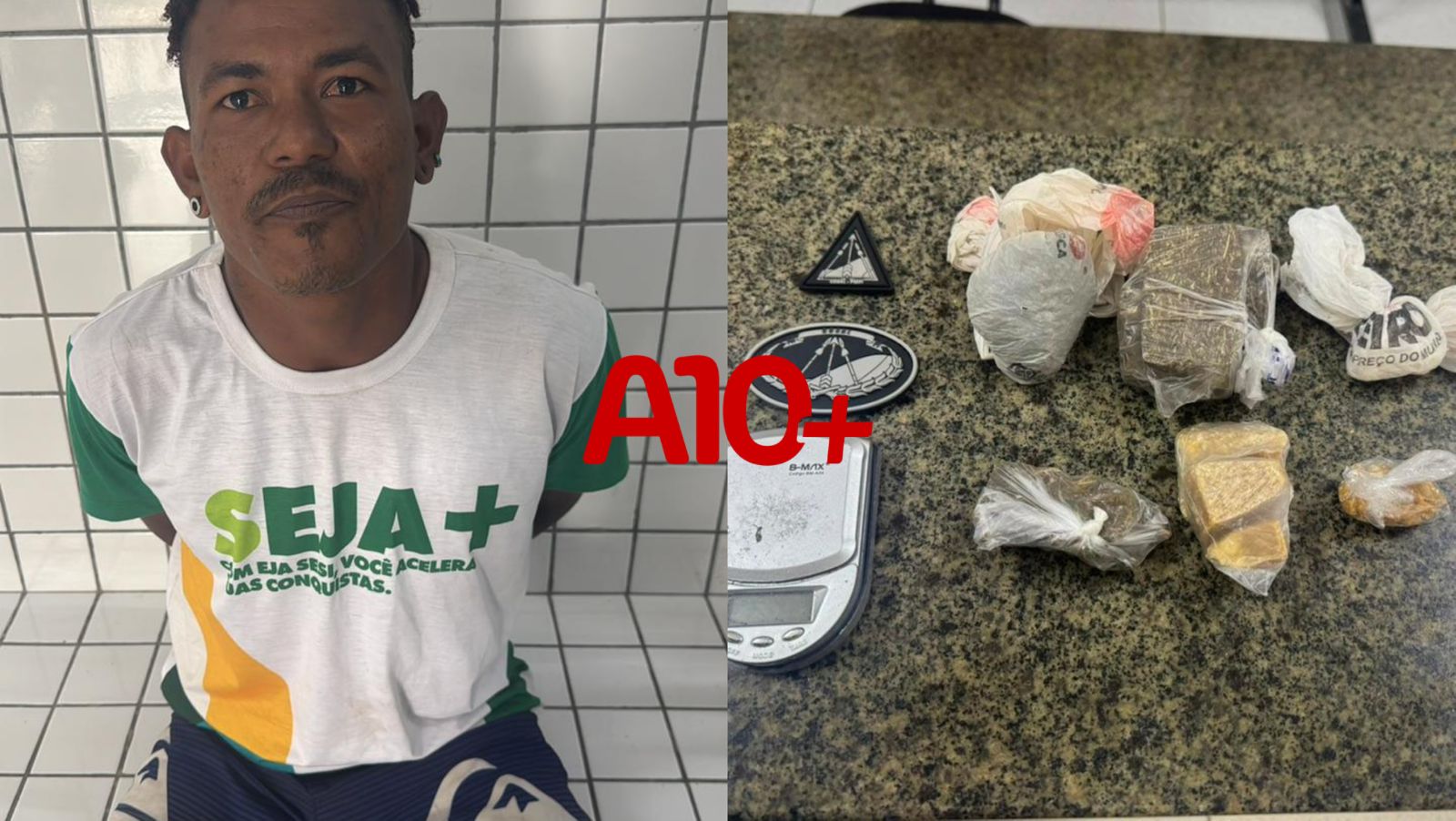 Nesse momento os policiais efetuaram uma abordagem e de imediato o suspeito já informou que estava em situação de flagrante. Ele confessou às autoridades que estava portando porções de crack, cocaína, maconha e uma balança de precisão. Todas as porções de drogas eram grandes.