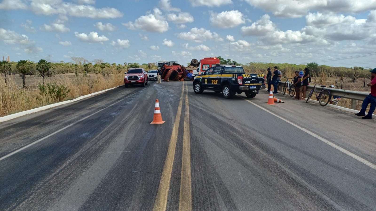 Segundo a PRF, ainda não se sabe a real a dinâmica do fato, que compreendeu mais dois veículos, dentre esses um caminhão, carregado de tijolos, que tombou na pista e deixou o KM 257 parcialmente interditado. A corporação afirmou que o desvio está sendo feito pelo acostamento, sem previsão de liberação. O motorista teria ficado ferido.