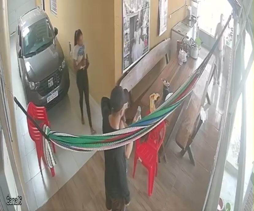 Em determinado momento, o homem se levantou, aproximou-se da vendedora e anunciou o assalto, revelando estar armado. O casal roubou diversos pertences do comércio e rendeu a funcionária.
