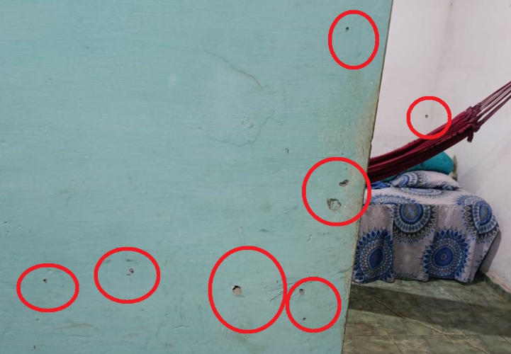 Ainda segundo a polícia, os criminosos efetuaram aproximadamente dez disparos de arma de fogo dentro do imóvel. O jovem, identificado apenas pelas iniciais G. C. A., conseguiu escapar ao fugir pelos fundos da casa e não foi atingido.