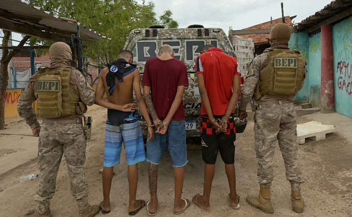 Dois homens, identificados apenas pelas iniciais J.V.S.S. e L.L.S. foram presos suspeitos de tráfico de drogas e um adolescente, identificado como A.R.N.S., foi apreendido na manhã deste domingo (21), durante uma ação do Batalhão Especial de Policiamento do Interior (BEPI), na Vila Mandacaru, bairro São João, zona Sudeste de Teresina.