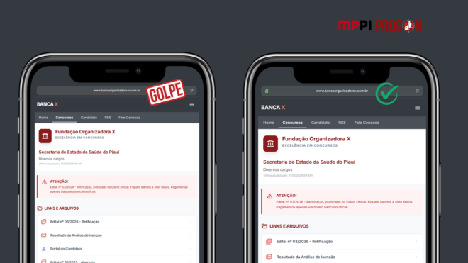 O Procon/MPPI também alertou para os golpes envolvendo site falsos, que também estão entre as principais ameaças. De acordo com o órgão, ferramentas de inteligência artificial permitem que golpistas criem, em poucos minutos, páginas falsas praticamente idênticas às originais, dificultando a identificação da fraude pelos consumidores. Esses sites fraudulentos aparecem frequentemente em anúncios de pesquisa e redes sociais, simulando portais de concursos públicos, lojas virtuais, planos de saúde e órgãos governamentais.