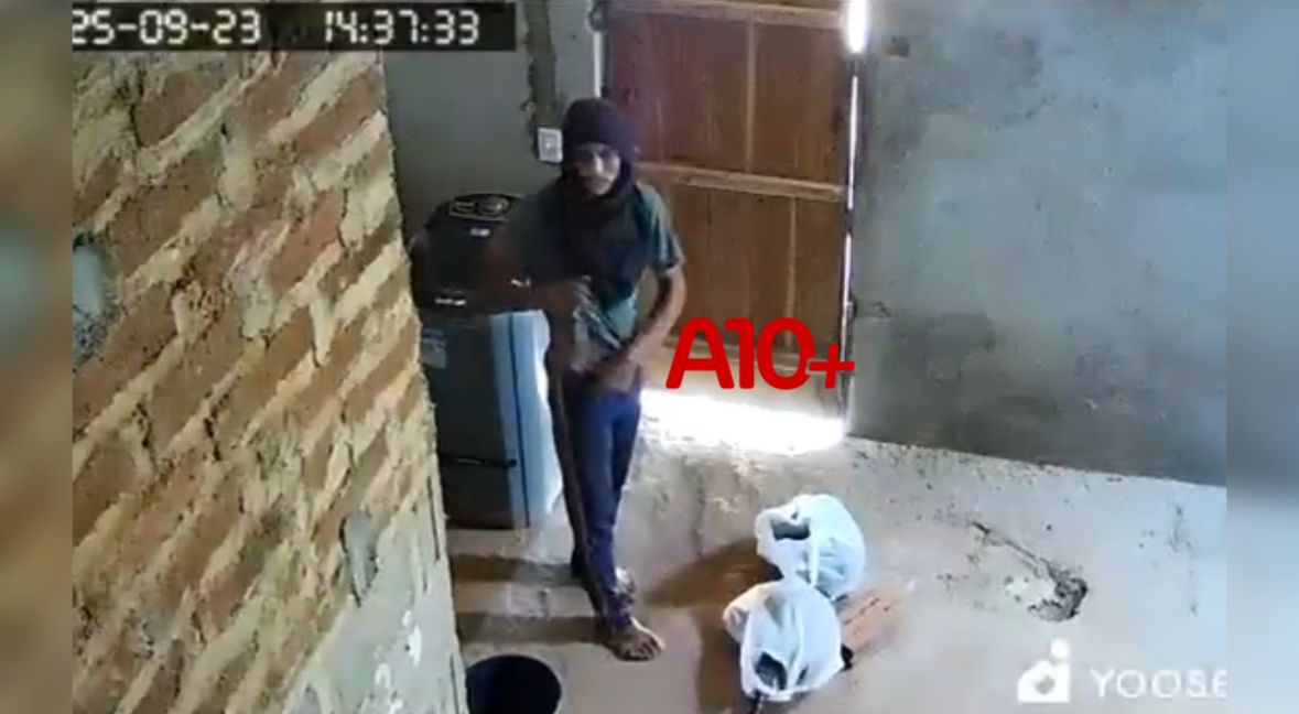 Imagens de câmeras de segurança do local flagraram o homem entrando no local pelo telhado. Logo depois, ele aparece dentro do imóvel com um faca grande e algumas sacolas com objetos furtados.