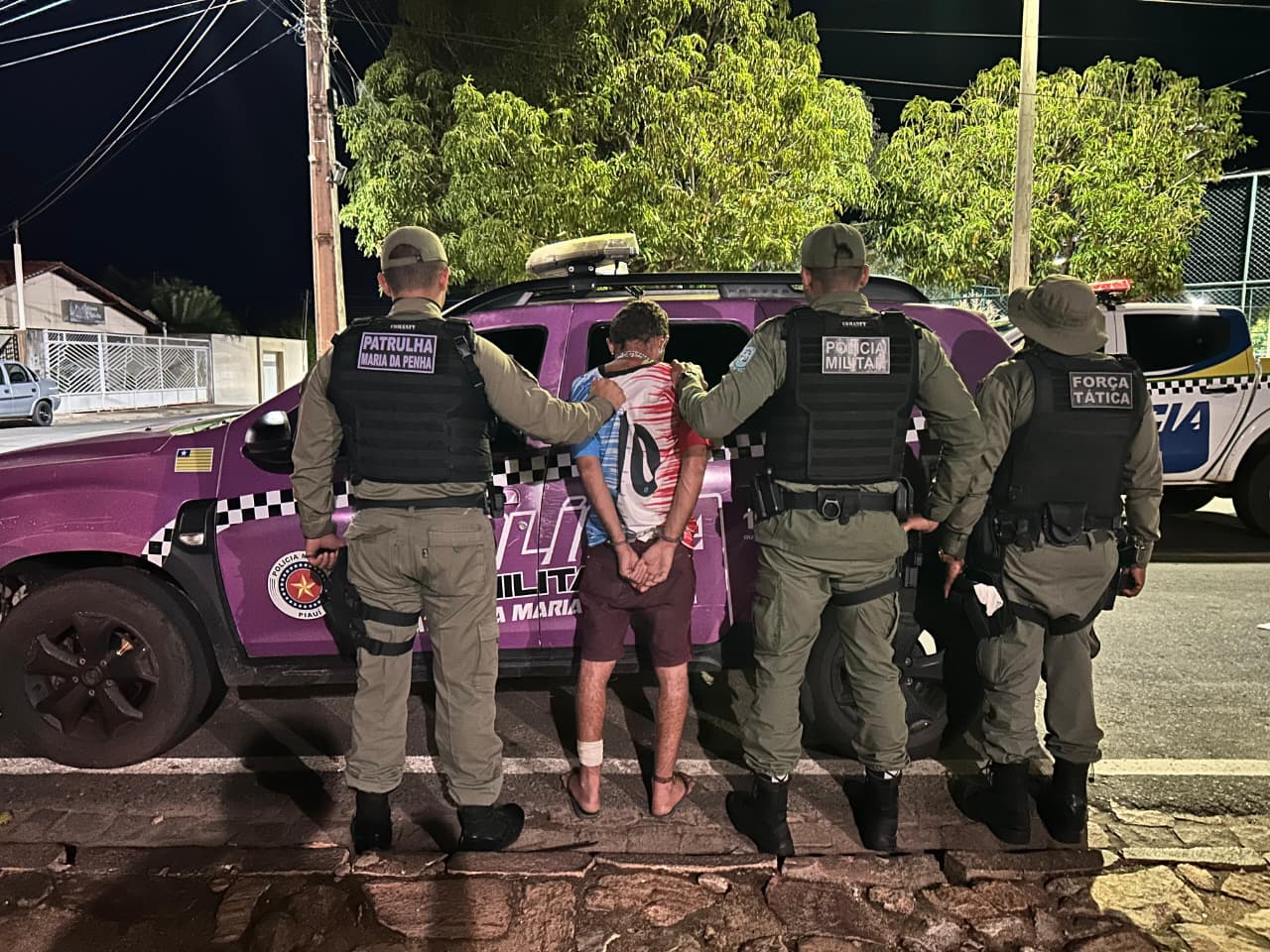 A ocorrência foi registrada por volta das 21h, quando as equipes foram informadas sobre uma agressão grave contra uma mulher. "As viaturas da Patrulha Maria da Penha iniciaram imediatamente diligências para localizar o suspeito, identificado pelas iniciais J. L. A. F. Durante as buscas, os policiais constataram que o homem estava escondido na residência do próprio pai. Ao perceber a presença da Polícia Militar, o suspeito tentou fugir pulando o muro do imóvel, mas a área já havia sido cercada pelas guarnições, que conseguiram capturá-lo em seguida", diz a PM.