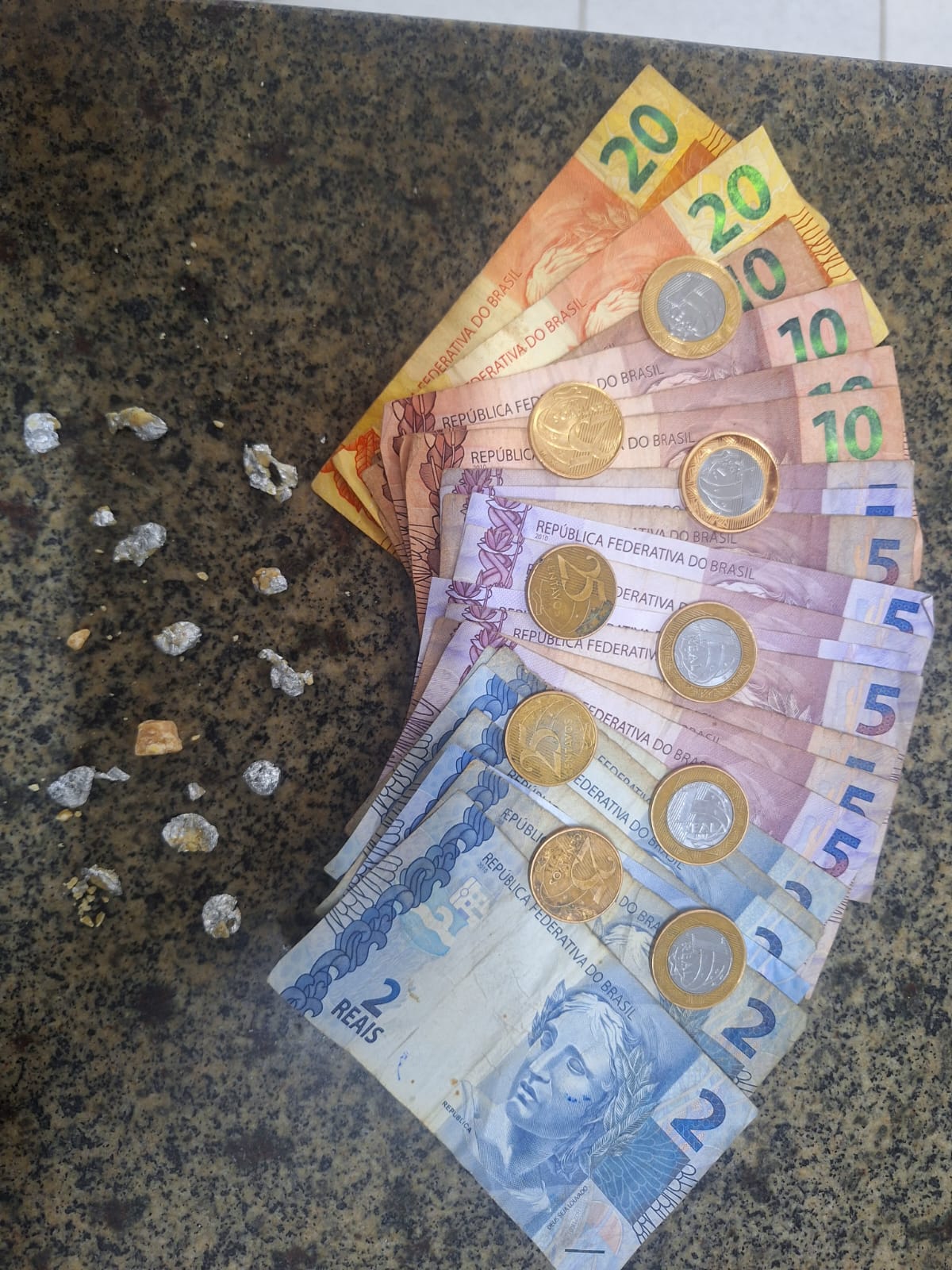 Ao todo, foram apreendidas 15 porções fracionadas da substância análoga a crack, além de R$ 155,00 em dinheiro trocado.