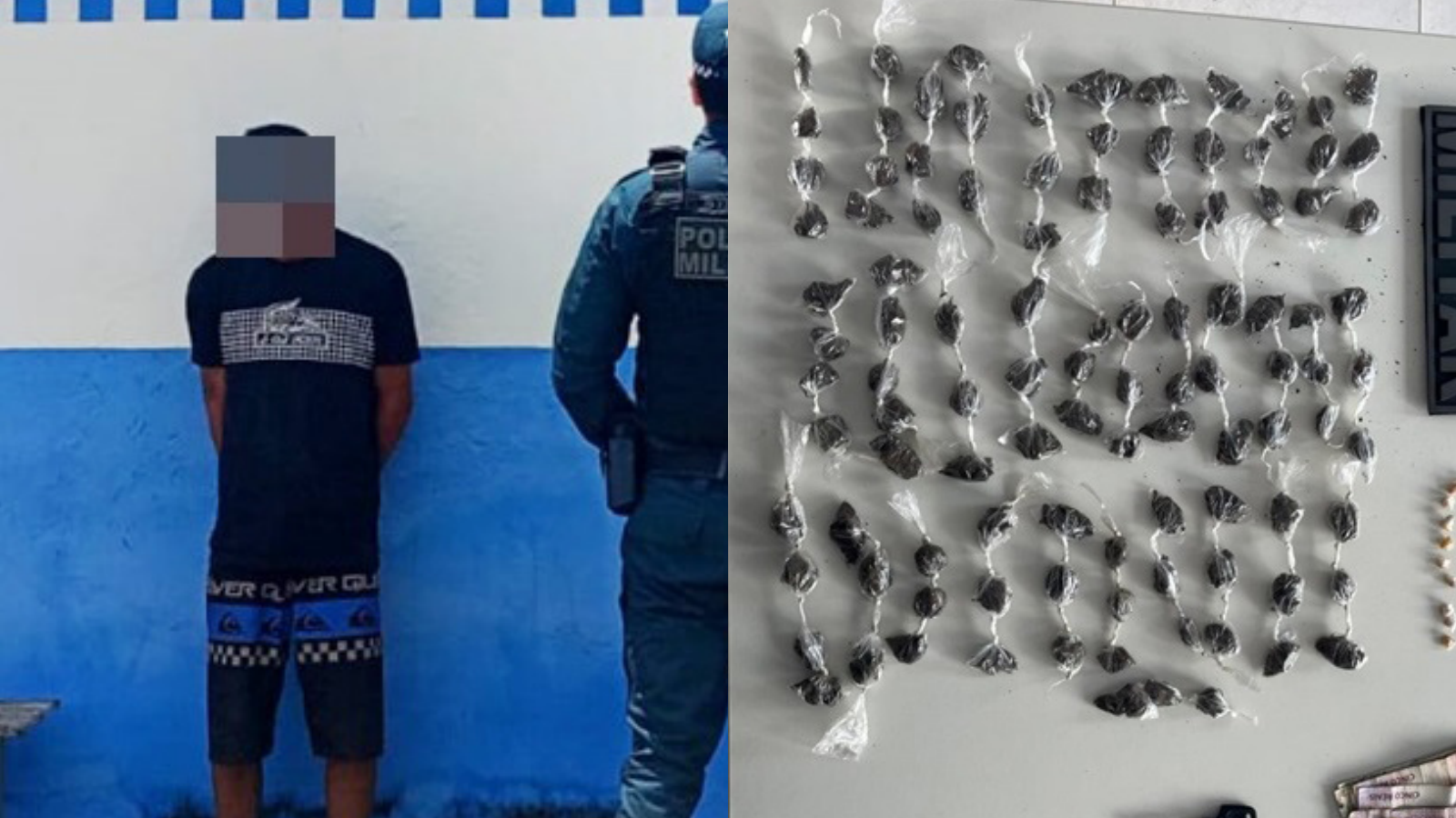 Ao visualizar a viatura, ele tentou fugir, mas foi perseguido e interceptado pelos agentes. Ele estava com mais de 20 pedras de crack. O indivíduo chegou a descartar mais 108 porções de maconha, que foram apreendidas na frente de uma residência.