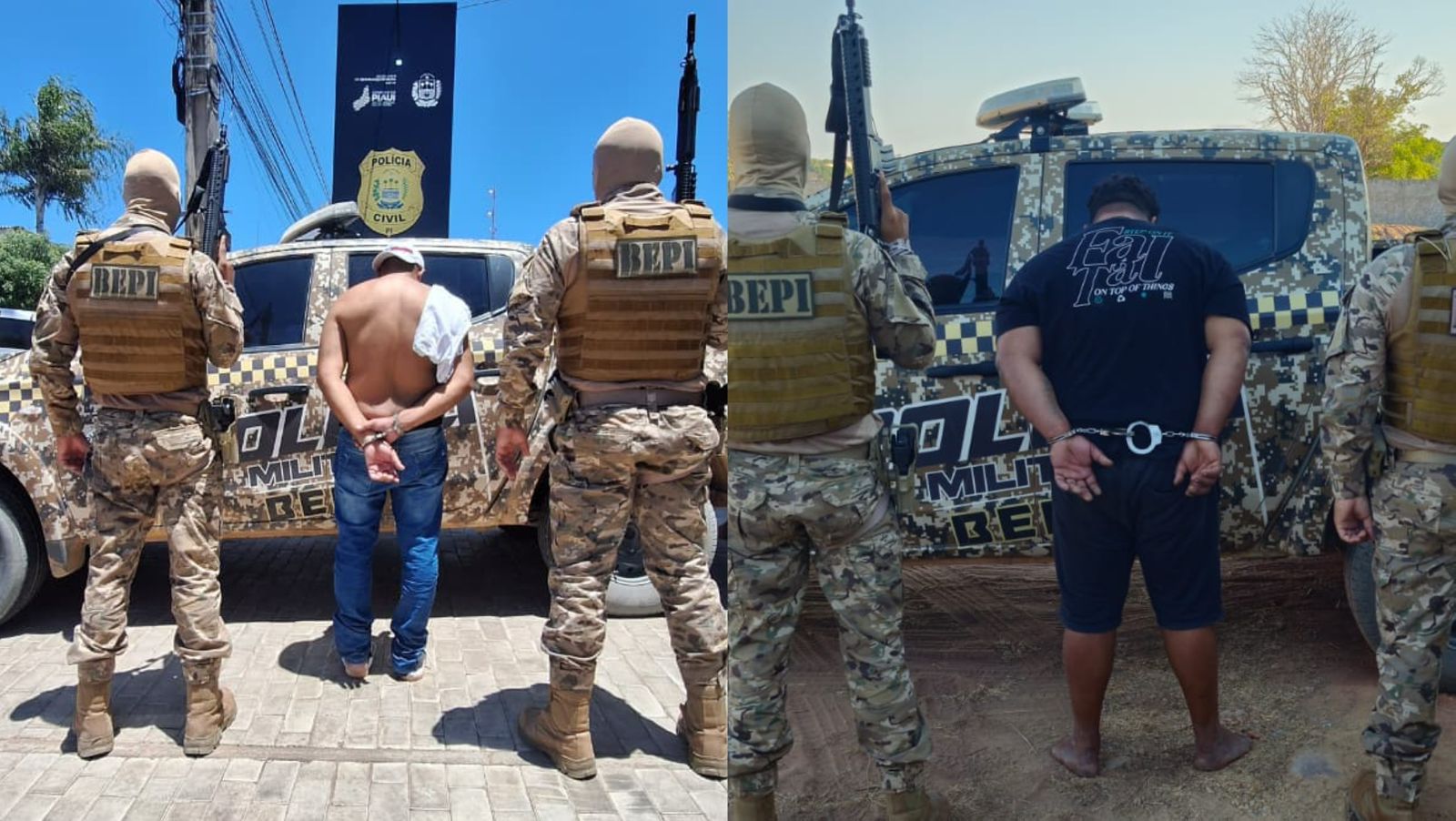 Dois homens, identificados pelas iniciais G.C.S. e N.N.F., foram presos em flagrante durante uma operação conjunta entre a Polícia Militar do Piauí, por meio da 4ª Companhia do Batalhão Especial de Policiamento do Interior (BEPI), e a Polícia Civil, realizada na manhã desta quinta-feira (2) em Bom Jesus, no Sul do estado. A ação cumpriu mandados de busca e apreensão nos bairros Miramar, em dois endereços.