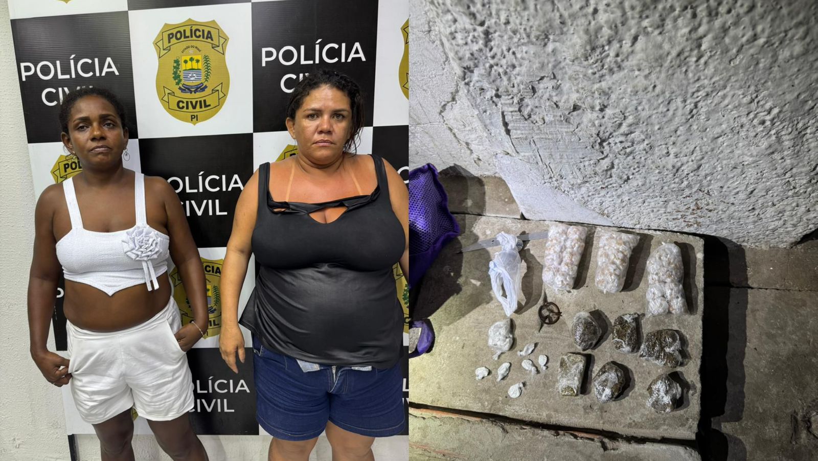 Duas mulheres, identificadas como Maria José Pereira da Silva, de 42 anos, e Francilene Lula Nascimento, de 35 anos, foram presas em flagrante por tráfico de drogas e associação para o tráfico na noite dessa sexta-feira (27), durante a Operação Saturação na Praça da Bandeira, no Centro de Teresina.