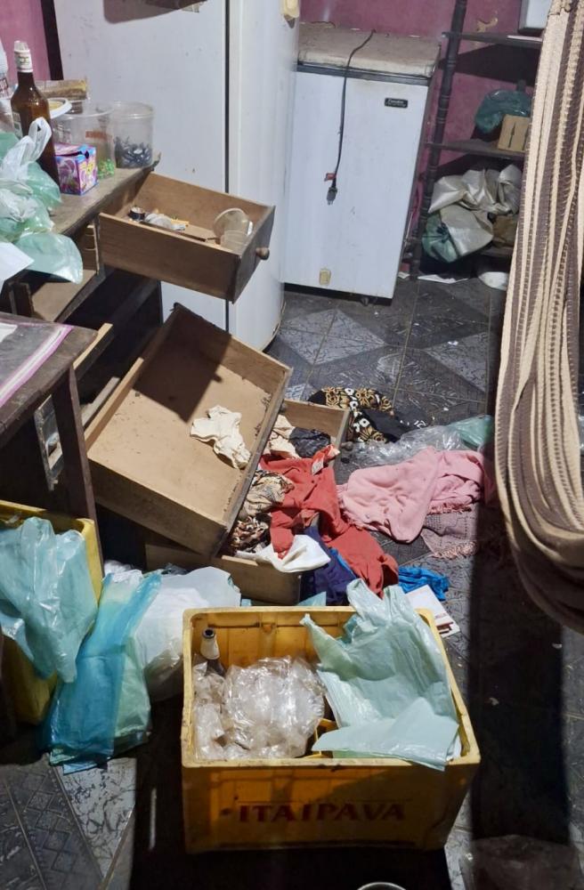 No local também foram encontradas diversas gavetas reviradas. A Polícia Militar isolou a área e acionou a Polícia Civil e a Perícia Técnica para os procedimentos necessários. O Instituto Médico Legal (IML) também foi chamado para realizar a remoção do corpo.