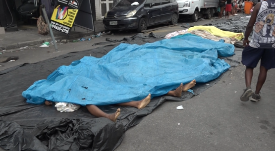 A pedido dos familiares, os corpos foram expostos para registro da imprensa, e depois foram cobertos com lençóis. A comunidade aguarda a retirada dos corpos pelo Instituto Médico-Legal.