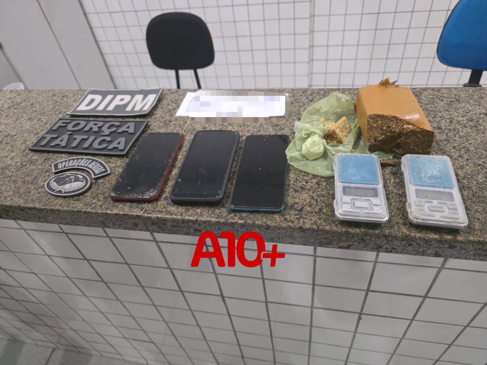 No local os policiais encontraram maconha, crack, cocaína e três celulares, além de balanças de precisão. Diante dos fatos todo material foi encaminhado a Central de flagrantes para os procedimentos legais.