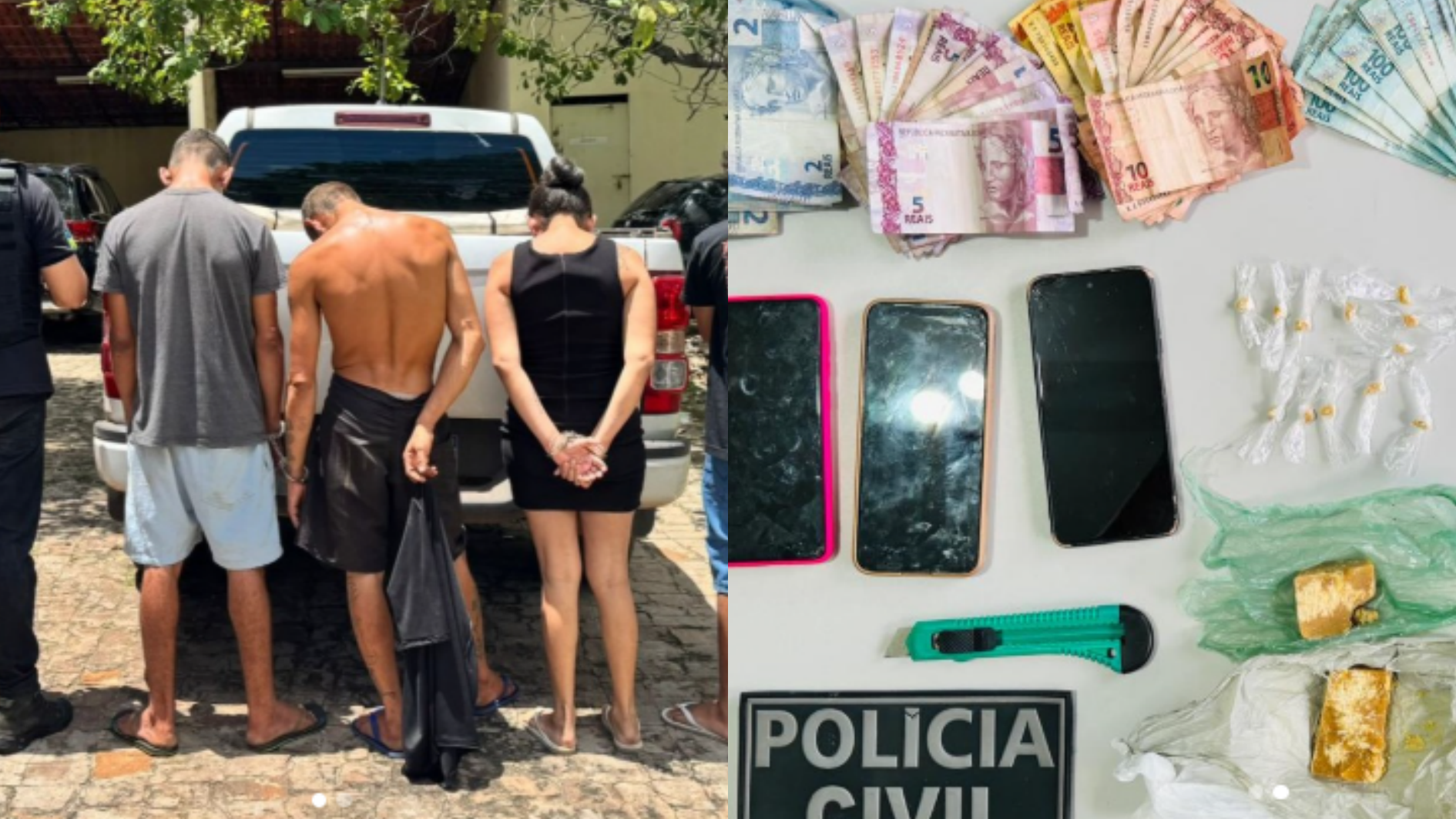 No local estavam três indivíduos de iniciais V. M. da C., F.M.C, M.A.C.A e F. S. N, sendo uma mulher e dois homens. Um adolescente também chegou a ser conduzido. Todos foram encaminhados para a delegacia da cidade.