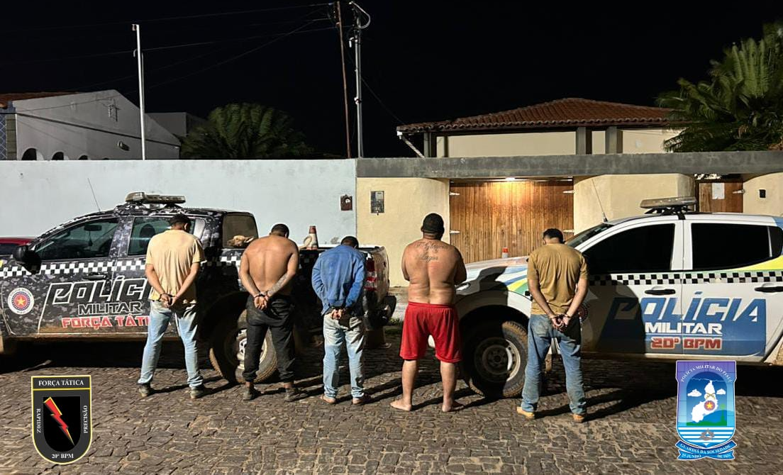 A 1ª Companhia do 20º BPM, em ação integrada com o Grupamento da Polícia Militar (GPM) de Acauã, recebeu informações sobre a circulação suspeita de um veículo branco nas localidades Japadinha e Carnaíba. As equipes realizaram abordagem ao veículo em uma estrada vicinal, onde localizaram R.C.S., de 33 anos; A.S.A., de 37 anos; K.S.P., de 30 anos; W.E.S.C., de 30 anos; e J.G.S., de 20 anos.