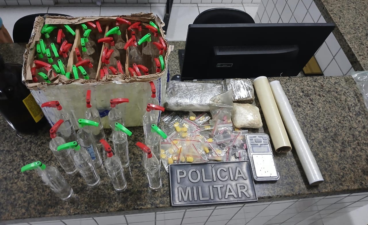 No imóvel foram localizados comprimidos de ecstasy, substância análoga à maconha, uma balança de precisão, frascos contendo lança-perfume, bem como outros apetrechos comumente associados à atividade de tráfico de entorpecentes.